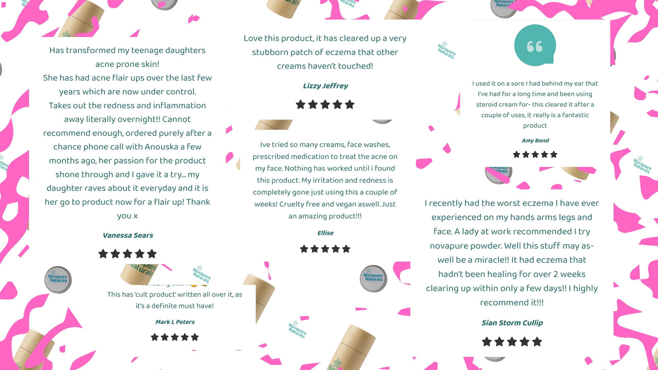 With our ever growing customer base, we have a steady stream of 5 star rated feedback from people telling us how NovaPure Naturals Multipurpose Powder has been a total game changer for their skin!
